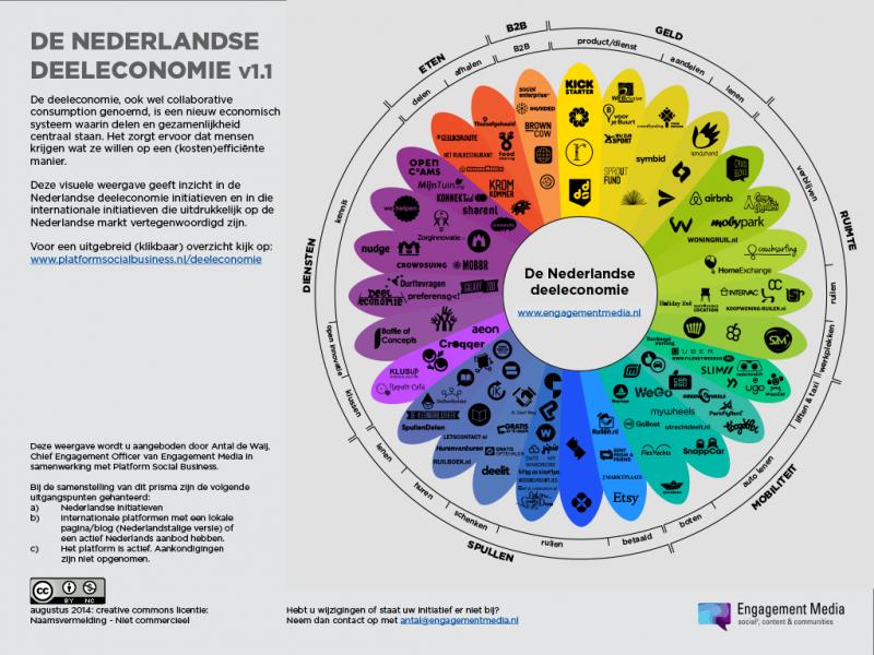 Een inventarisatie van Nederlandse deeleconomie initiatieven waaronder: Business-to-Business, kennis en creativiteit, klusdiensten, professionele diensten, open innovatie, crowdfunding, Mobiliteit, verblijven op locatie, werkplek delen, producten ruilen, kopen en lenen.